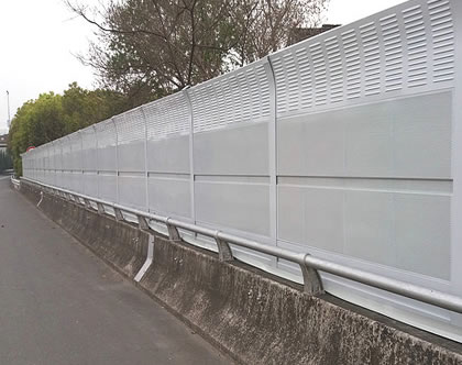 橋梁聲屏障的主要組成部件: 基礎(chǔ)、立柱、屏體、固定件、密封件,有的還包括頂部結(jié)構(gòu)。