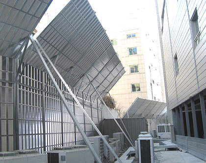 廠區(qū)聲屏障特別是火力發(fā)電廠,機械設備很多,加之設備布置集中,各設備產(chǎn)生的噪聲重重疊加、相互干擾,因而形成多重噪聲污染源,而且噪聲種類多樣,既有沉悶的低頻噪聲,又有刺耳的高頻噪聲。發(fā)電廠的噪聲除來自主機及其輔助機械外,還有來自管道系統(tǒng)的主要閥件,這些噪聲頻率范圍為:低頻小于500HZ,中頻為500-800HZ,高頻大于800HZ。發(fā)電廠周圍的居住區(qū)受噪聲影響很大,造成居民的生活困擾,對發(fā)電廠的工人也會噪聲身體上的損害。因此,對其進行治理是必要的,主要可以通過建立發(fā)電廠隔聲屏障對傳播途徑進行控制。